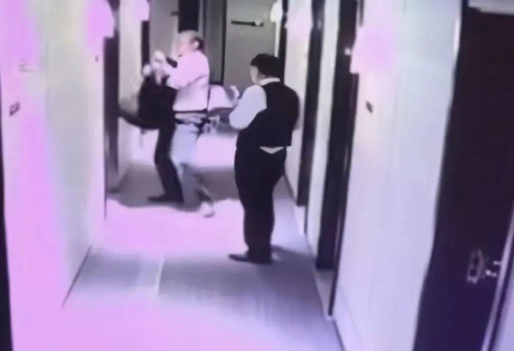 △事发时酒店监控记录到的画面。